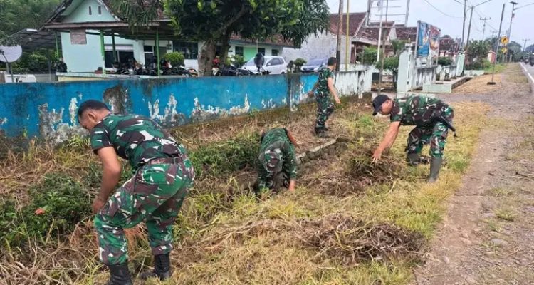 Abung Barat – KOMPAS1.id || Anggota Koramil 412-07/Abung Barat melaksanakan kegiatan pembersihan