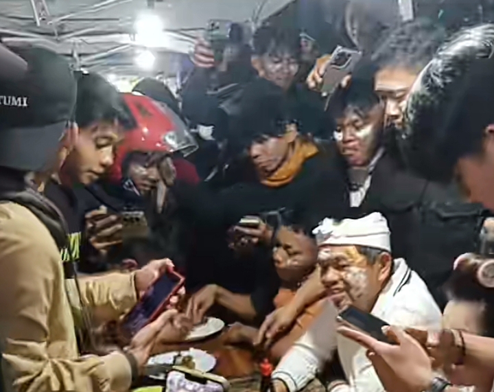 Gubernur Jawa Barat KDM. Bapa Aing Hadir di Tengah kerumunan Para Demonstran tuk mendengarkan Aspirasi nya , Sosok pemimpin yang di Cintai Masyarakat Jawa Barat KDM Menanggapi Ber-bagai Aspirasi dari demonstras Untuk bisa di Sampaikan, dan di suarakan , di tengah kerumunan Tersebut KDM Turun Sambil di Menutupi. Mata dan Hidung. yang Sempat Kena lemparan Serta Gas Air Mata yang terus di Tembakan kepada Para Demonstran, KDM pun terus menemui para Demonstran Tak menurun kan Semangat Karena yang Berdemo. baik Mahasiswa ,ojol dan warga Masyarakat jawa adalah Warga Jawa Barat yang baik, KDM Temui langsung dan Berdialog diskusi dengan salahse orang Demonstran .