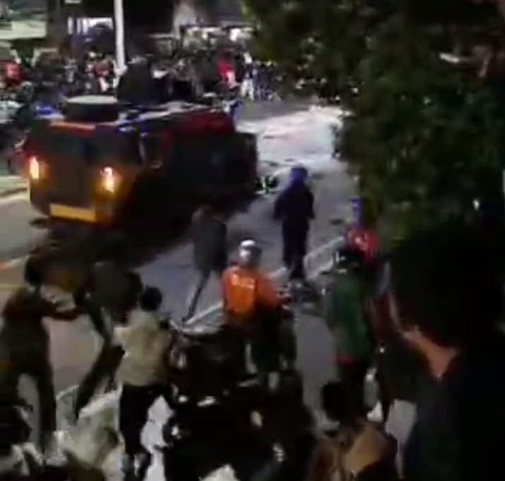 Kronologi*: Berdasarkan rekaman video amatir, mobil taktis Brimob berhenti sejenak setelah menabrak Affan, namun kemudian melaju setelah dikerumuni massa yang berusaha memukuli dan melempari mobil tersebut, sehingga melindas Affan hingga mengalami luka serius.