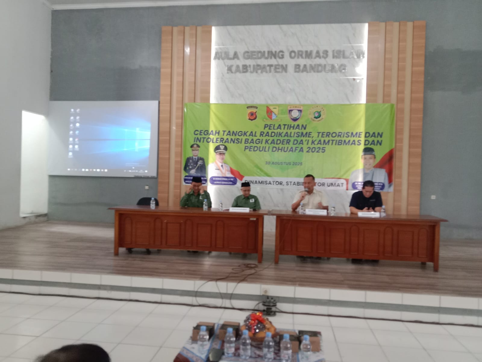 Pelatihan cegah tangkal Radikalisme, Terorisme dan Intoleransi bagi Kader Dai Kamtibmas dan peduli Dhuafa 2025, digelar di Gedung Ormas Islam Soreang, Sabtu ( 30/8/25 ).
