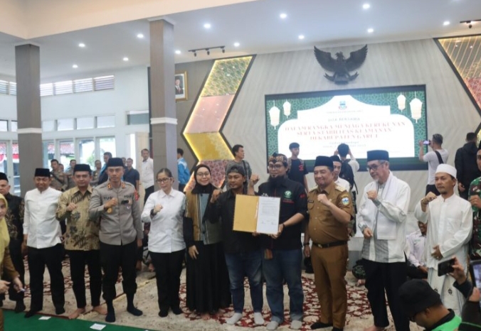 ojek online (ojol) menggelar doa bersama di Gedung Pendopo Garut pada 1 September 2025. Kegiatan ini bertujuan untuk mempererat silaturahmi antara aparat keamanan, pemerintah daerah, dan masyarakat, serta memohon doa agar Kabupaten Garut tetap aman, kondusif, dan penuh keberkahan.