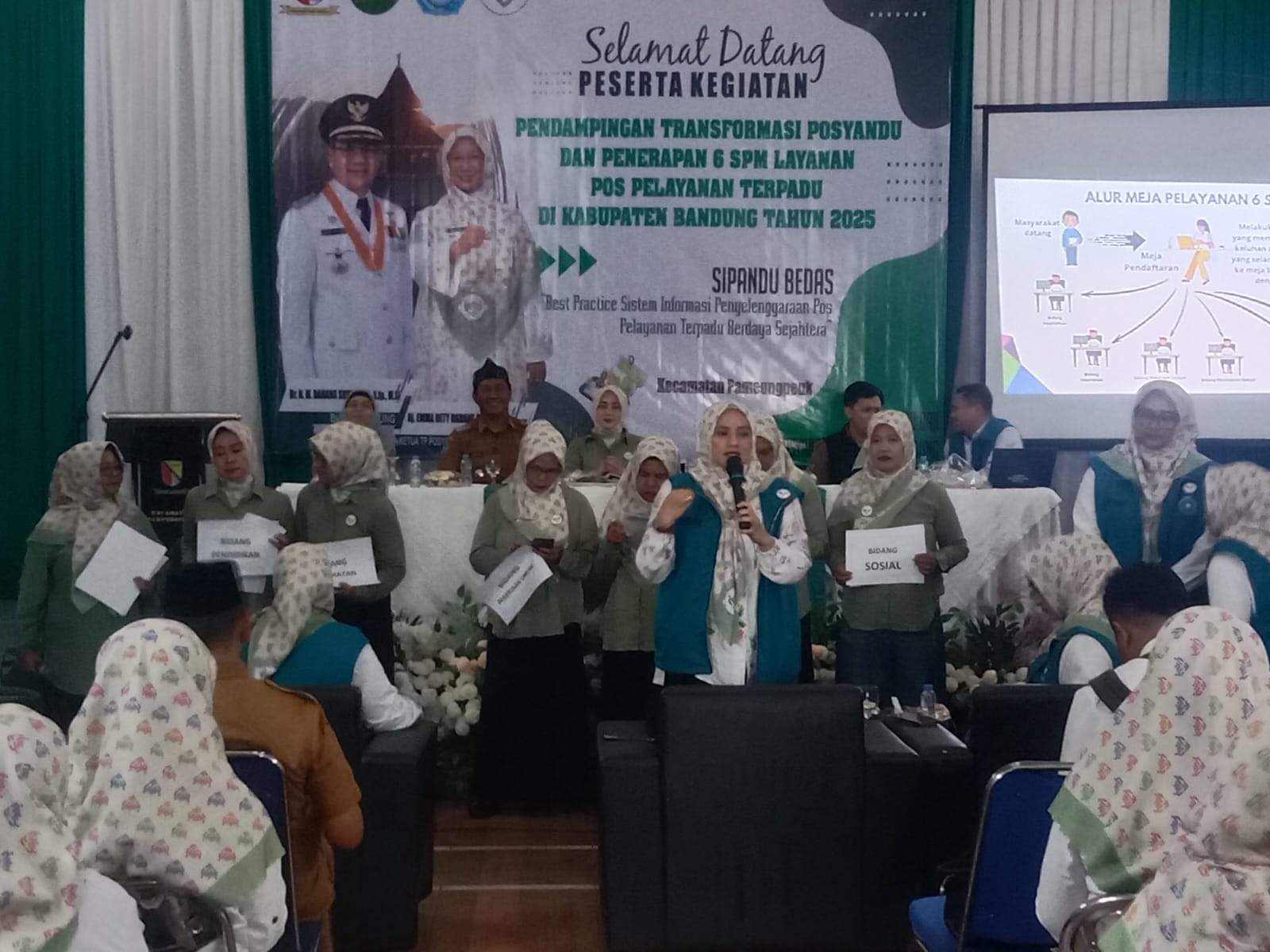 Kegiatan Roadshow Optimalisasi Transformasi Posyandu Kecamatan Pameungpeuk dititik pusatkan di GOR Desa Rancatungku dengan menghadirkan berbagai Ketua Posyandu dan Sekretaris dari seluruh posyandu se Kecamatan Pameungpeuk, Selasa ( 16/9/25 ).