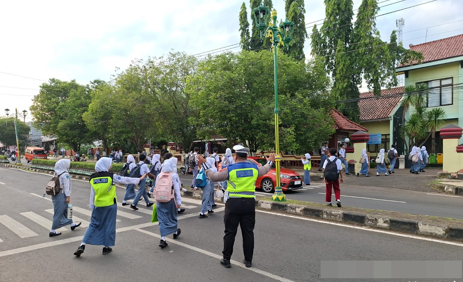 Sejak pagi hari, kehadiran anggota Polri tampak di sejumlah simpang jalan, pasar, depan sekolah, dan kawasan padat aktivitas lainnya. Mereka tak hanya melakukan pengaturan lalu lintas, tetapi juga memberikan imbauan keselamatan kepada pengguna jalan.