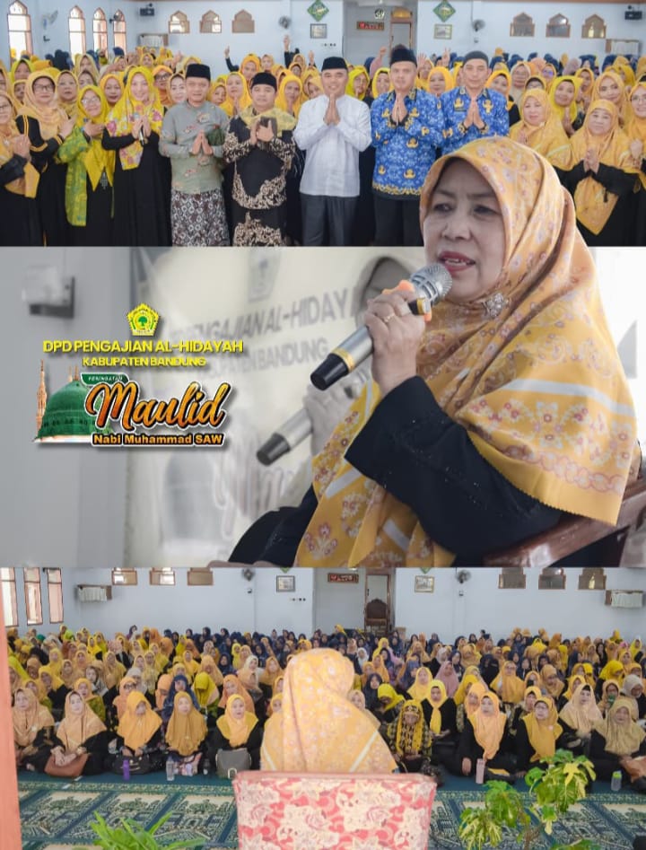 Sekretaris DPD Pengajian Al-Hidayah Kabupaten Bandung, Yasri Yusniarti, S.I.Kom., bersama Hj. Aisyah Hudaya, dalam kesempatan tersebut memaparkan makna Maulid Nabi Muhammad SAW sebagai momentum penting untuk meneladani akhlak dan perjuangan Rasulullah. Peringatan Maulid, menurutnya, bukan hanya menjadi ajang silaturahmi, tetapi juga sarana memperkuat ukhuwah Islamiyah dan menumbuhkan semangat kebersamaan dalam membangun masyarakat yang berakhlak mulia.