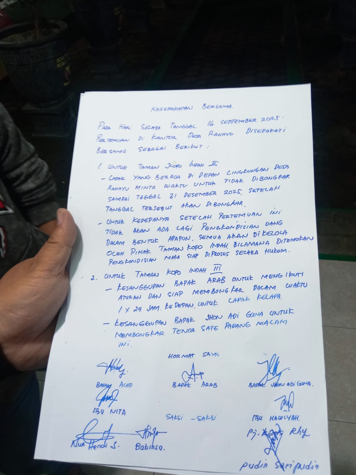 – Untuk ke depannya setelah pertemuan ini tidak akan ada lagi pengkondisian uang dalam bentuk apapun semua akan dikelola oleh pihak Taman Kopo Indah. Bilamana di temukan pengkondisian, maka siap BILAMANA di proses secara hukum.