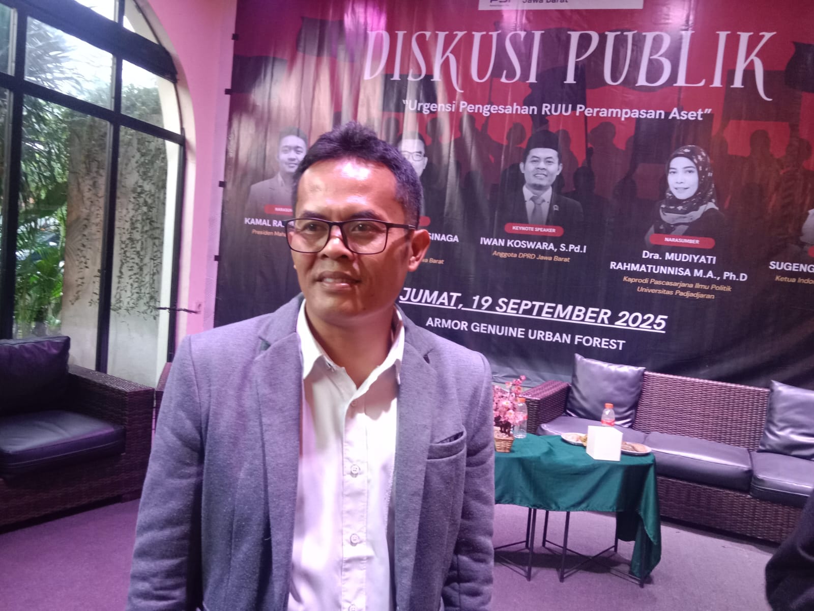 Anggota DPRD Provinsi Jawa Barat Iwan Koswara, S.Pd.I menjadi Keynote Speaker dalam acara ” Diskusi Publik ” yang digelar oleh Dewan Pimpinan Wilayah (DPW) Partai Solidaritas Indonesia (PSI) Jawa Barat mengambil bertema“Urgensi Pengesahan RUU Perampasan Aset” di Cafe Armor Genuine Urban Forest, Leuwipanjang, Bandung, Jumat (19/9/2025).