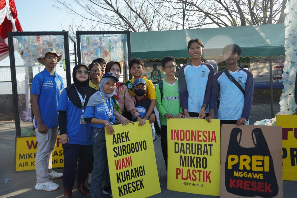 Ecoton mengapresiasi perwali Kota Surabaya yang mendorong penggunaan plastik sekali pakai yaitu tas plastik kresek dan popok sekali pakai. “Pemkot perlu juga mewajibkan penduduk kota mengurangi pemakaian air minum dalam kemasan, styrofoam dan makanan minuman sasetan karena wadah makanan inilah sumber mikroplastik yang meracuni tubuh manusia” imbuh Amiruddin.