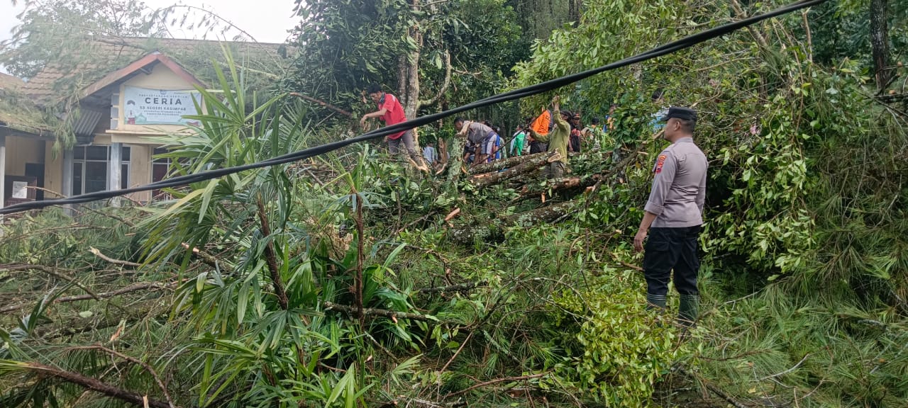 Polres Pekalongan – Polda Jateng – Hujan deras disertai angin kencang yang melanda wilayah Kabupaten Pekalongan pada Rabu (24/09/2025) siang menyebabkan pohon tumbang dan merusak bangunan Sekolah Dasar Negeri (SDN) Kasimpar, Dukuh Cokrowati, Desa Kasimpar, Kecamatan Petungkriyono.