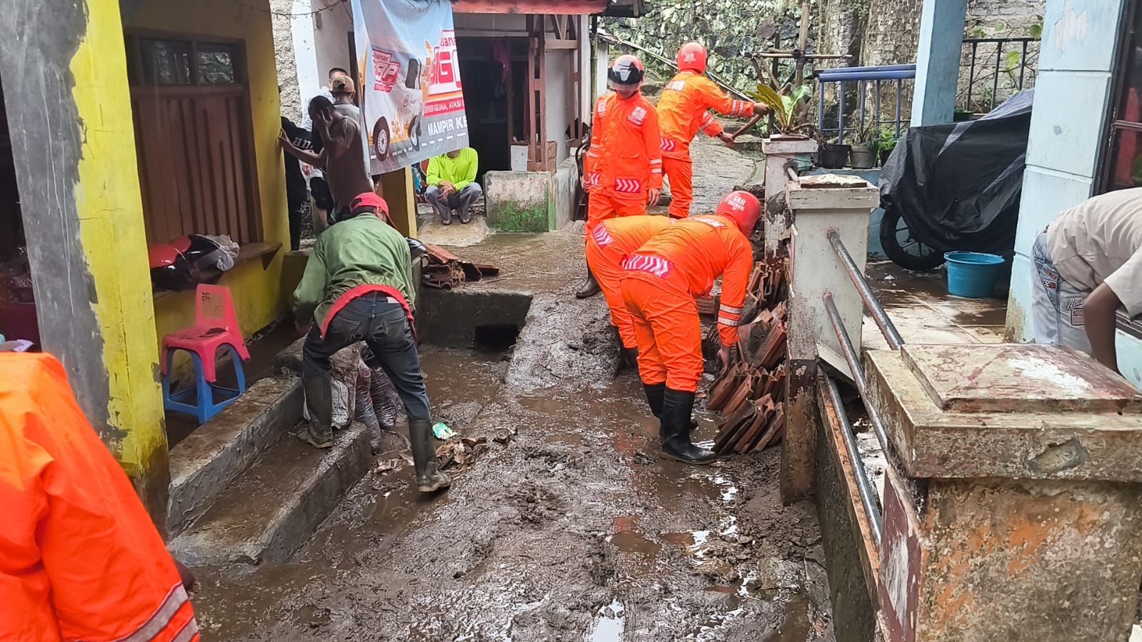 Sebagai bentuk respons cepat, Tim SAR Batalyon B Pelopor Sat Brimob Polda Jawa Barat diterjunkan untuk membantu proses penanganan pasca bencana. Personel tampak berjibaku membersihkan material lumpur yang menutupi jalan dan halaman rumah warga menggunakan peralatan manual. Upaya ini dilakukan agar aktivitas masyarakat dapat kembali normal dan risiko kesehatan akibat genangan lumpur dapat diminimalisir.