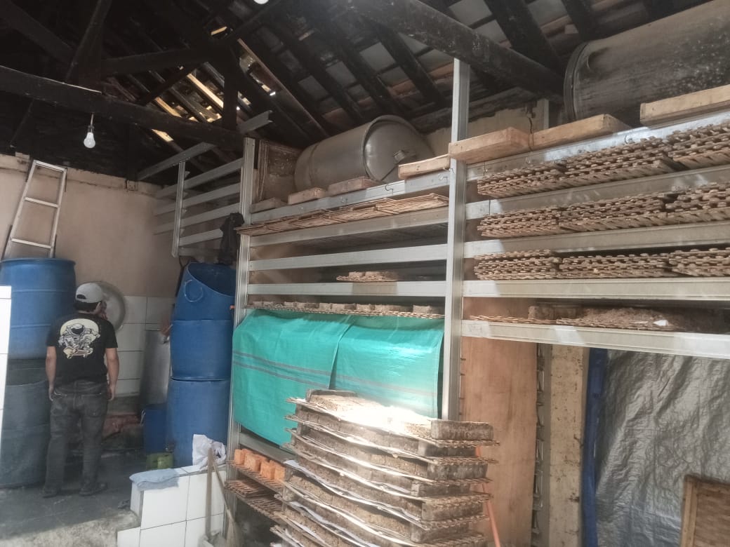 proses pembuatan oncom di ONCOM BERKAH masih menggunakan cara-cara tradisional. Bahan baku utamanya berupa ampas tahu dan kacang tanah dipilih dari pemasok lokal yang masih segar. Setelah melalui tahapan pembersihan dan pengolahan, bahan tersebut kemudian difermentasi menggunakan ragi khusus hingga menghasilkan oncom dengan aroma dan rasa khas. Meski ruang produksinya sederhana, kebersihan tetap menjadi prioritas utama, sehingga produk yang dihasilkan selalu terjamin mutunya.