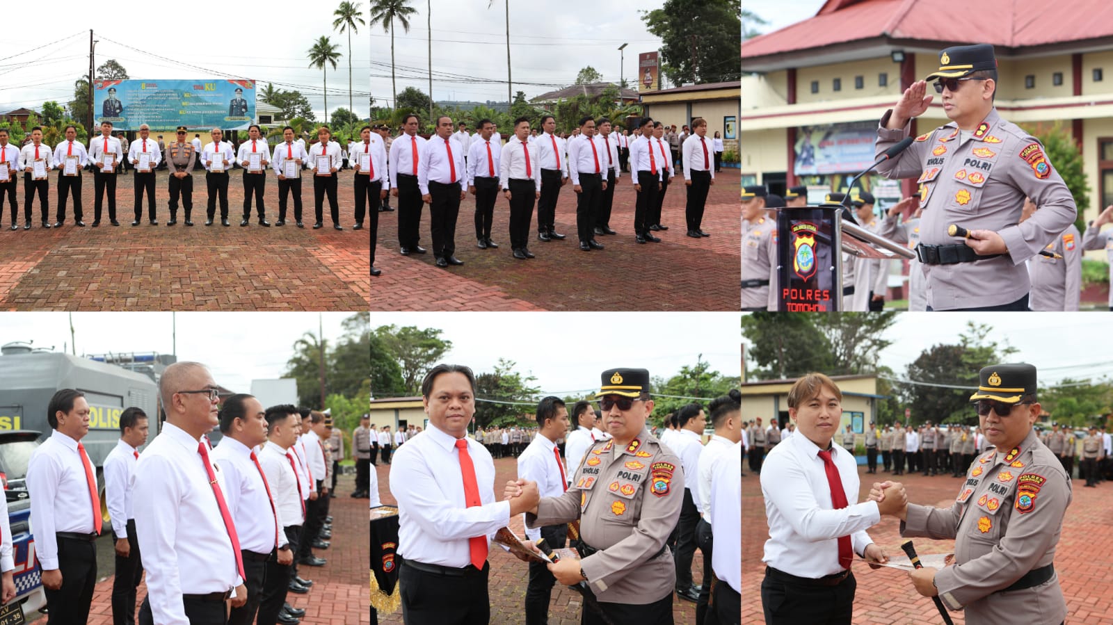 Penyerahan penghargaan berlangsung sederhana namun penuh makna, dihadiri oleh Wakapolres KOMPOL Winifred Cynthia Lenti, S.H. bersama para pejabat utama dan Kapolsek jajaran serta seluruh personel Polres Tomohon dengan suasana penuh semangat dan kebanggaan.