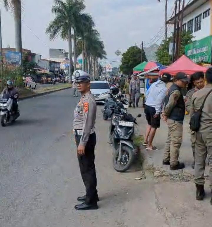 Polsek Margaasih Pengamanan dan Himbauan penertiban pedagang Kaki lima di desa Mekar Rahayu kecamatan Margaasih Kabupaten Bandung.
