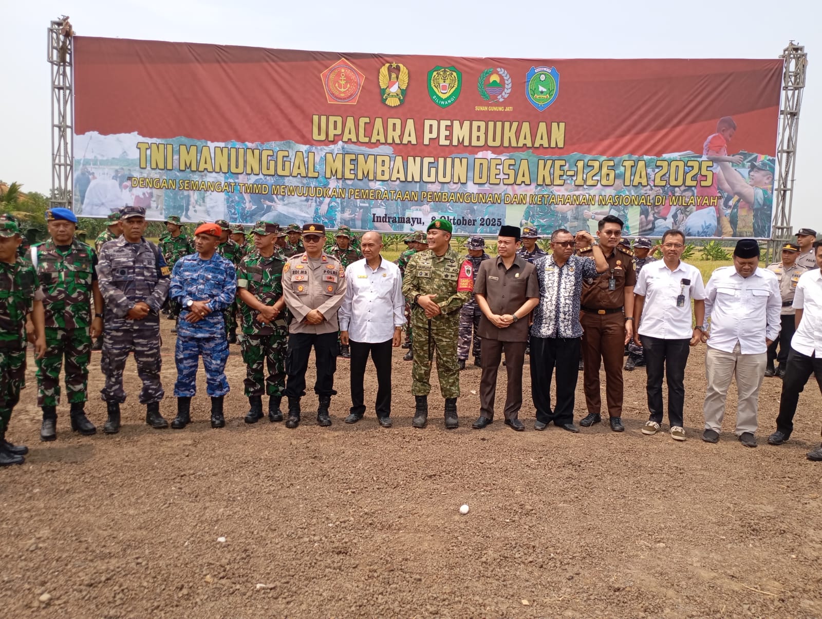 Kodim 0616/Indramayu resmi membuka pelaksanaan TNI Manunggal Membangun Desa (TMMD) ke-126 Tahun 2025 di Desa Longok, Kecamatan Sliyeg, Kabupaten Indramayu, Rabu (8/10/2025). Upacara pembukaan berlangsung khidmat di lapangan desa setempat dengan Dandim 0616/Indramayu, Letkol Inf Yanuar Setyaga, S.IP bertindak sebagai inspektur upacara.