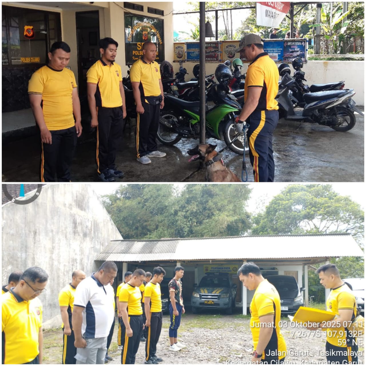 **Garut**10/10/2025 – Kapolsek Cilawu Polres Garut **AKP R. Hasan, SH** memimpin **apel pagi sekaligus olahraga bersama K9 Squad “Milan”**, dalam rangka meningkatkan kesiapan dan pelayanan prima kepada masyarakat.
