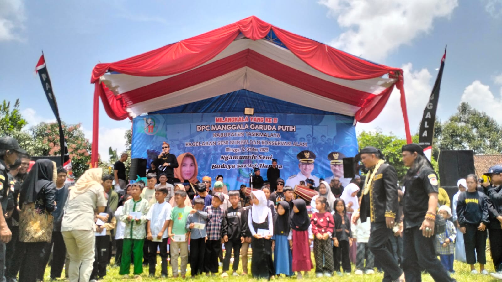 Kompas 1.id., MILANGKALA KE 11 ORMAS DPC MANGGALA GARUDA PUTIH Tasikmalaya dengan tema ” Ngamumule Seni Budaya sareng Alamna” yang di laksanakan pada hari Minggu,12 Oktober 2025 ,Di lapangan sepak bola Selebu, kecamatan Mangunreja, Kabupaten Tasikmalaya,Jawa Barat.