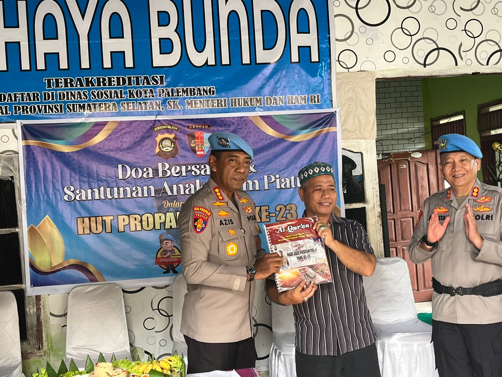 Dalam rangka memperingati Hari Ulang Tahun ke-23 Bidang Profesi dan Pengamanan (Propam) Polri, Bidpropam Polda Sumatera Selatan melaksanakan kegiatan bakti sosial dengan memberikan bantuan kepada anak-anak tuna rungu dan yatim piatu yang seluruh kegiatannya dipusatkan di Panti Sosial Cahaya Bunda, Jalan Pipa Reja, Palembang, Jumat (17/10/2025) pukul 09.00 WIB.