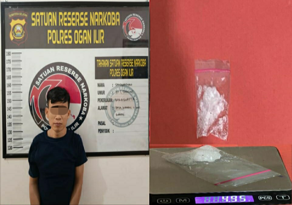 Tersangka berinisial SA (Sandi Ardiansyah, 34 tahun), warga Dusun III Desa Kandis I, Kecamatan Kandis, Kabupaten Ogan Ilir. Dari tangan tersangka, petugas menemukan barang bukti berupa 1 (satu) buah klip bening sedang berisi narkotika jenis sabu dengan berat bruto 4,95 gram.