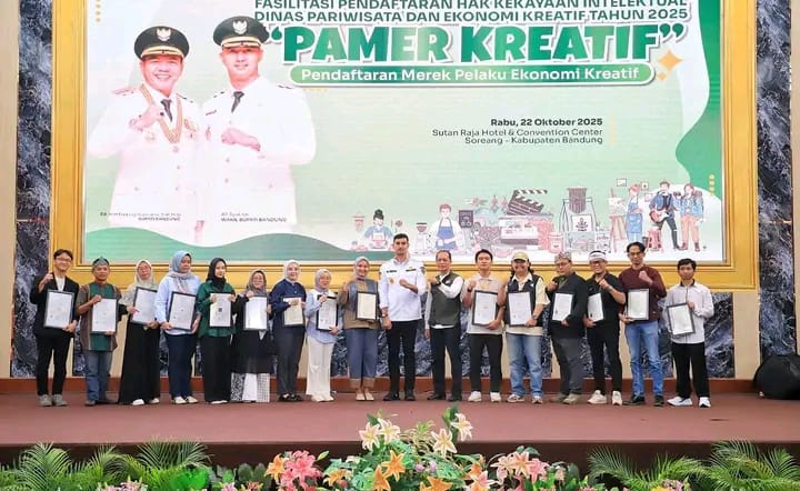 Wakil Bupati Ali Syakieb membuka kegiatan Pamer Kreatif (Pendaftaran Merek Pelaku Kreatif) Tahun 2025, yang diselenggarakan oleh Dinas Pariwisata dan Ekonomi Kreatif Kabupaten Bandung bertempat di Hotel Sutanraja. Acara ini menjadi bagian dari komitmen Pemerintah Kabupaten Bandung dalam mendukung perlindungan hukum terhadap karya pelaku ekonomi kreatif serta mendorong peningkatan daya saing produk lokal.
