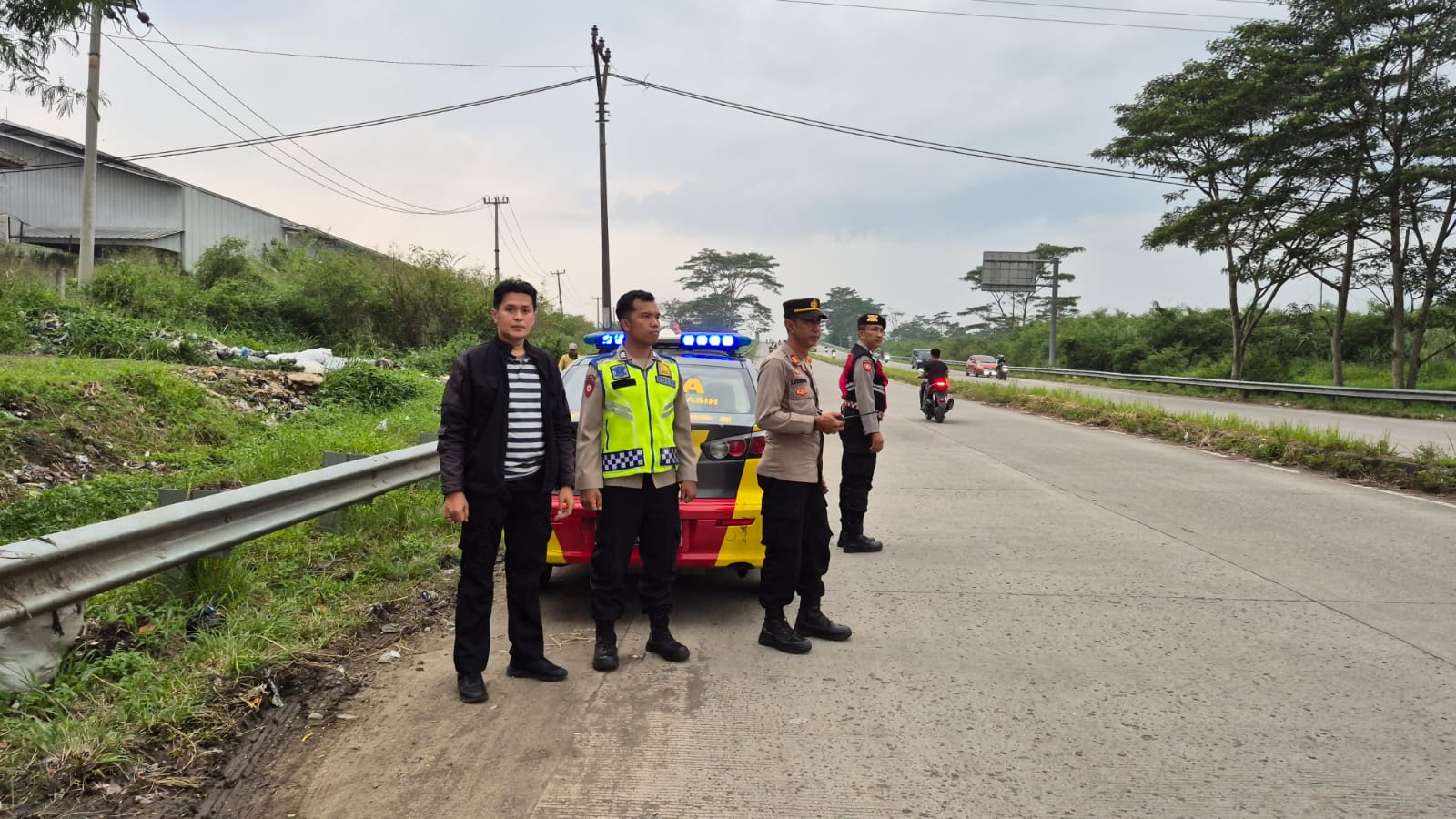 Hadir jajaran Polsek Margaasih yang turut antisipasi Balapan liar di gate tol soroja TKI yakni.