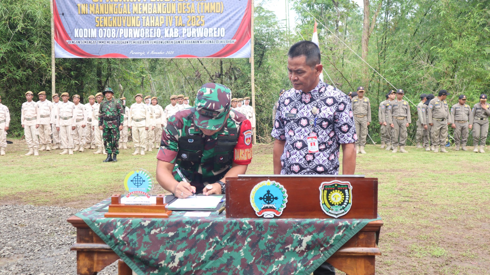 Purworejo – kompas1.id Program TNI Manunggal Membangun Desa (TMMD) Sengkuyung Tahap IV Tahun 2025 resmi ditutup oleh Dandim 0708/Purworejo Letkol Inf Imam Purwoko, S.E., M.H.I., pada upacara penutupan yang digelar di Lapangan Desa Kalinongko, Kecamatan Loano, Kabupaten Purworejo, Kamis (6/11/2025).