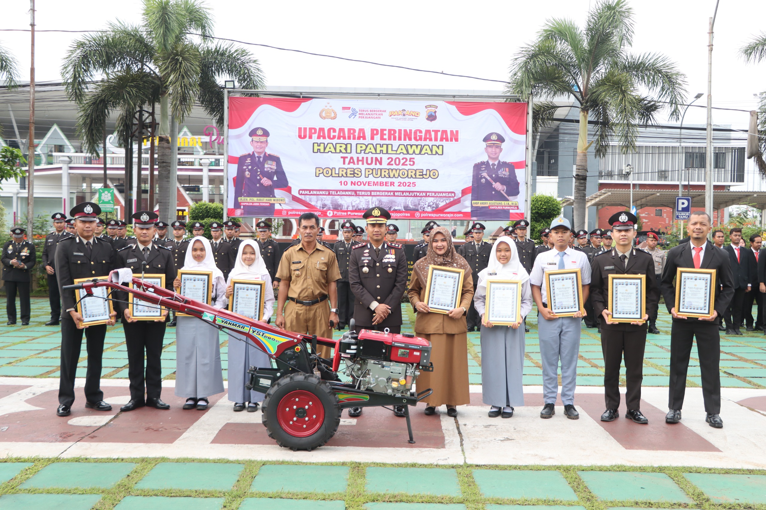 Kepolisian Resor (Polres) Purworejo menggelar upacara peringatan Hari Pahlawan yang diperingati setiap tanggal 10 November dengan nuansa yang berbeda. Dalam momen sakral tersebut, Kapolres Purworejo AKBP Andry Agustiano, S.I.K., M.Si. memberikan penghargaan kepada sejumlah personel Polres dan masyarakat yang berprestasi luar biasa dalam mendukung program-program Kepolisian Republik Indonesia (Polri).