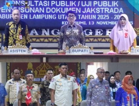 Di hadapan para peserta, Bupati kemudian membuka secara resmi Konsultasi Publik/Uji Publik Jakstrada 2025–2030 dan mengajak seluruh pemangku kepentingan untuk memberikan masukan positif demi kemajuan Kabupaten Lampung Utara.