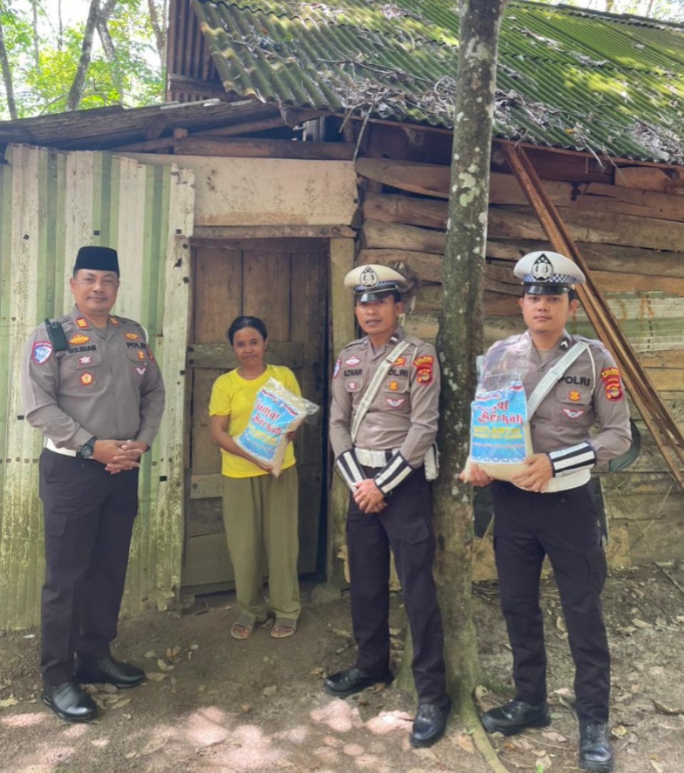 Dalam kegiatan tersebut, petugas menyalurkan bantuan sosial berupa beras kepada masyarakat kurang mampu sebagai wujud kepedulian bapak Kapolres Way Kanan terhadap kondisi sosial di lingkungan sekitar.