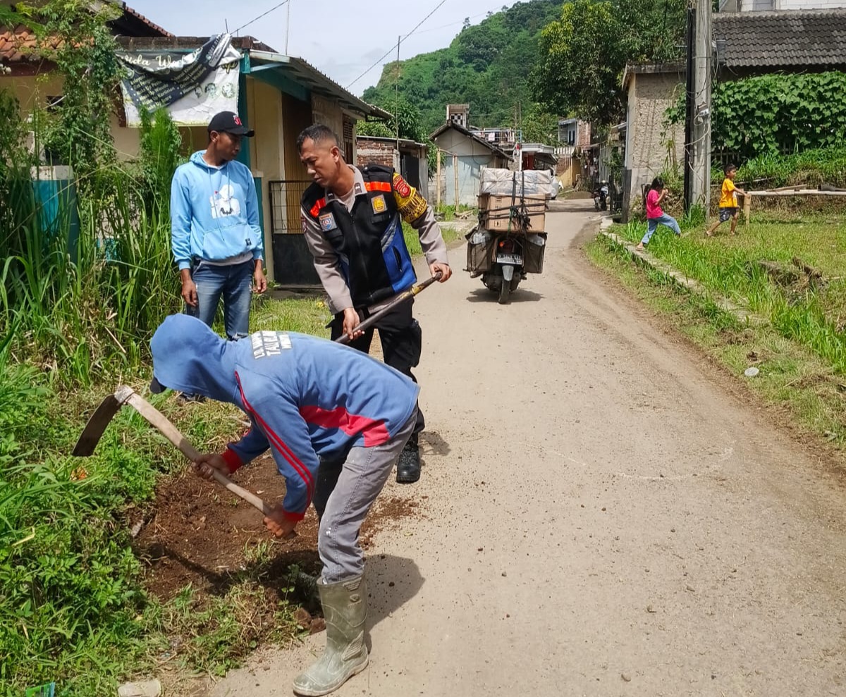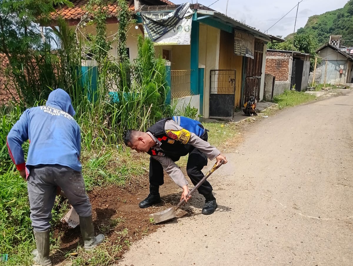 Bhabinkamtibmas Lagadar Polsek Margaasih Aipda Afip Lutfi tunjukan kepekaan ikut melaksanakan kegiatan Kerja bakti Kp Cikuya tongoh Giri mekar Rw 21, Desa lagadar. Kecamatan Margaasih Kabupaten Bandung.