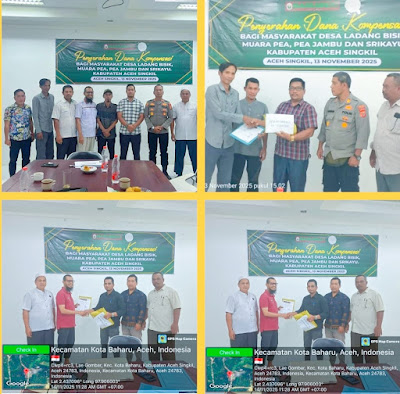 Diketahui adapun masing-masing Kampong penerima dana Kompensasi itu, yakni Pea Jambu dan Srikayu di Kecamatan Singkohor, Muara Pea dan Ladang Bisik di Kecamatan Kota Baharu, Pada 13–14 November 2025.