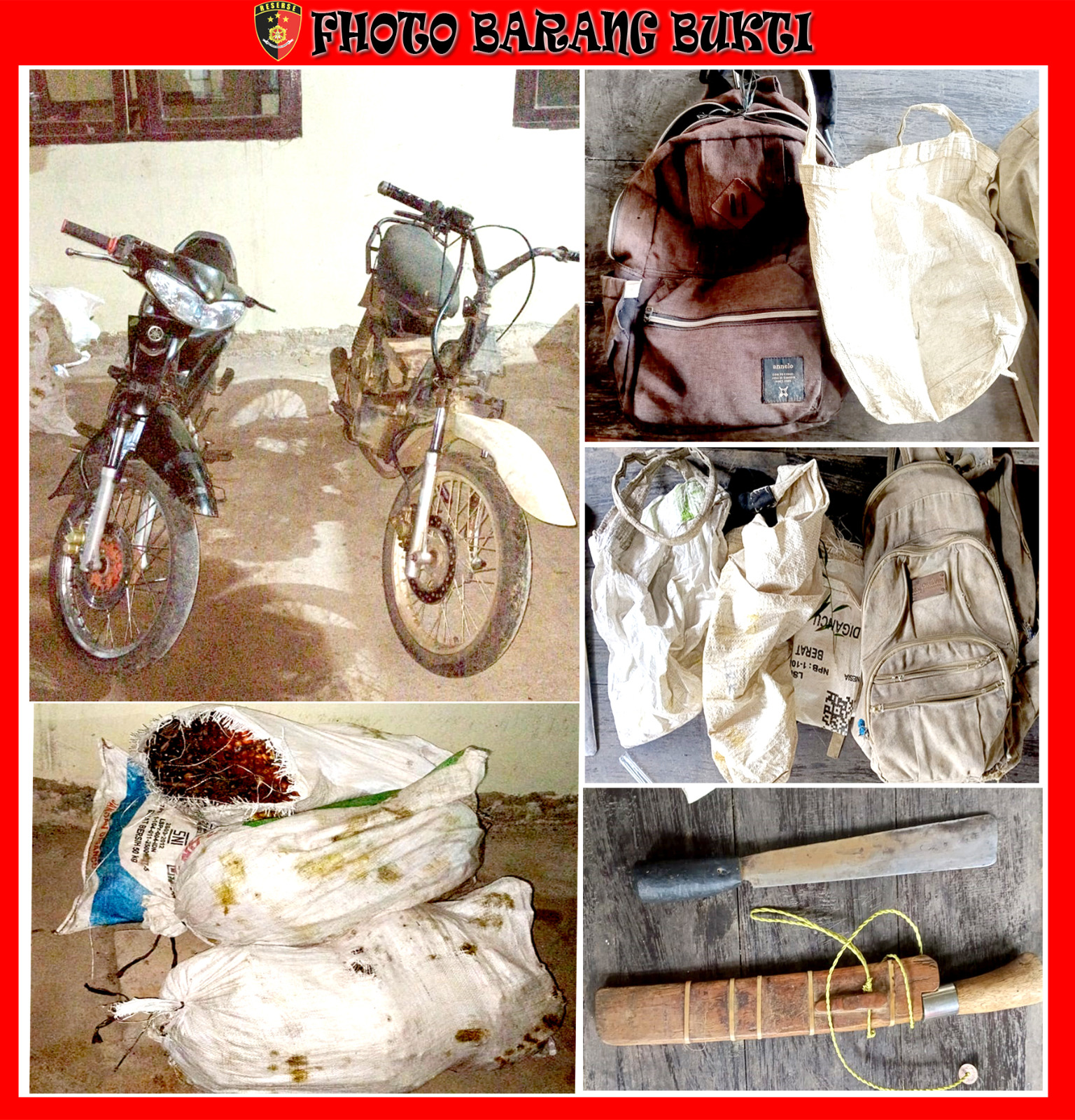 Selain itu, ada sebilah senjata tajam jenis golok tanpa sarung dan 1 (satu) buah karung warna putih didalamnya berisikan 4 (empat) tandan buah segar buah sawit.