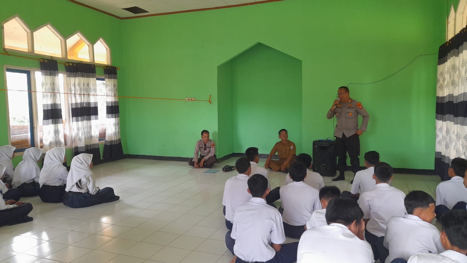 Polsek Gunung Labuhan Polres Way Kanan Polda Lampung gelar police goes to school di SMPN 5 Kampung Negeri Mulyo Kecamatan Gunung Labuhan Kabupaten Way Kanan. Selasa (18/11/2025).