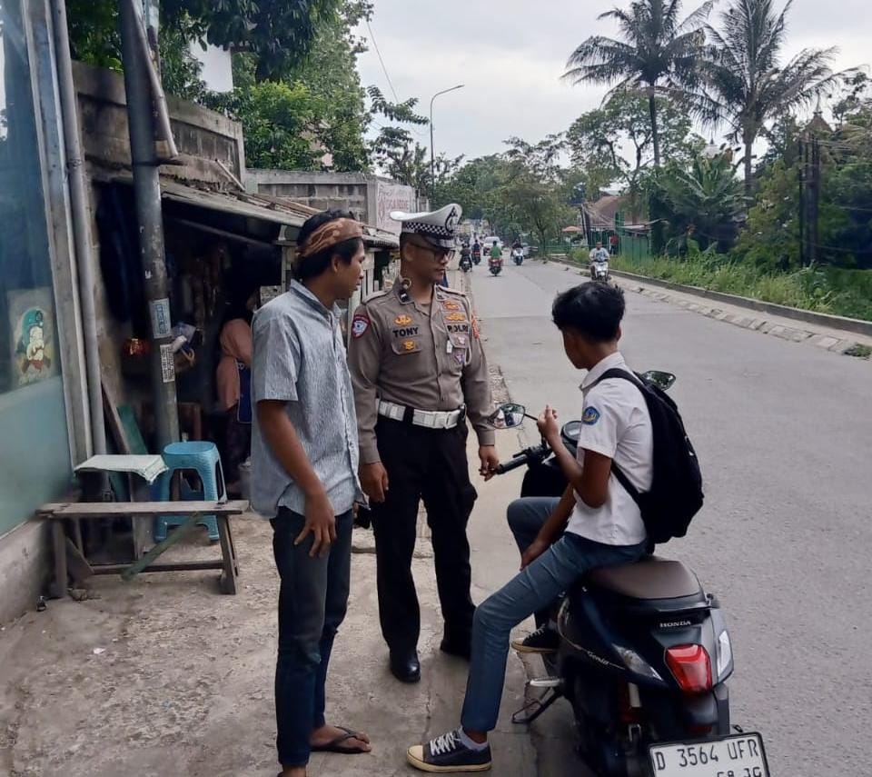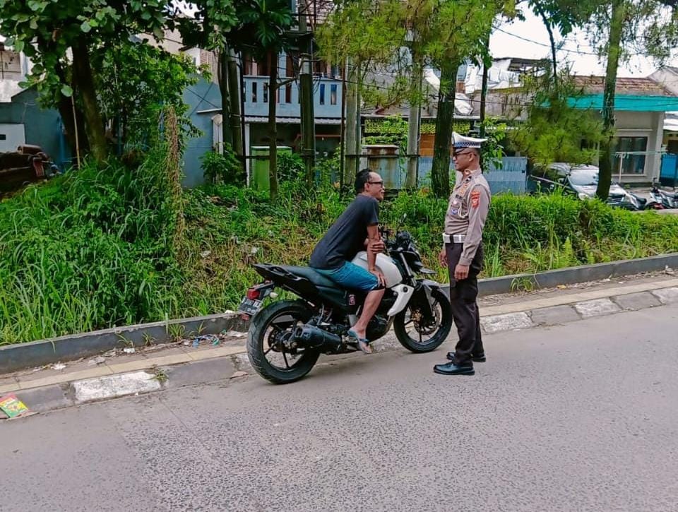 “_- Memberikan Himbauan Pengendara dan penumpang kendaraan Roda 2 yang tidak memakai Helm;_