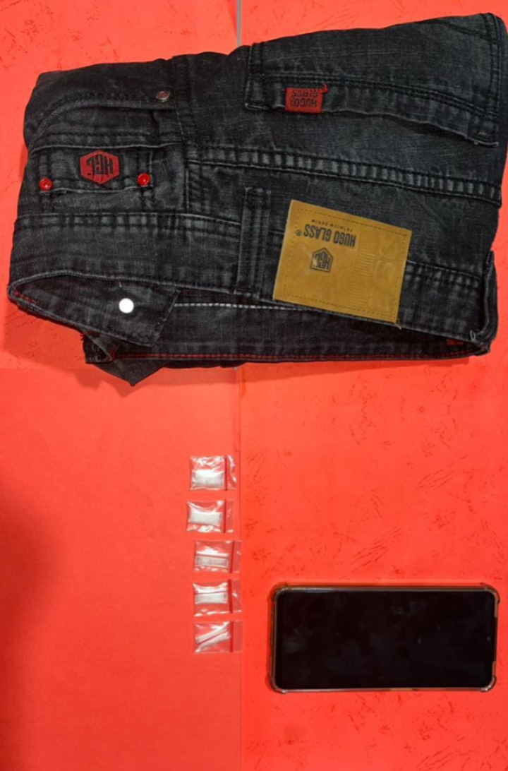 Hasil penggeledahan oleh petugas ditemukan barang atau benda yang diduga ada kaitanya dengan tindak pidana narkotika di dalam saku celana depan yang dipakai RP pada sebelah kiri dan di genggaman tangan sebelah kiri.