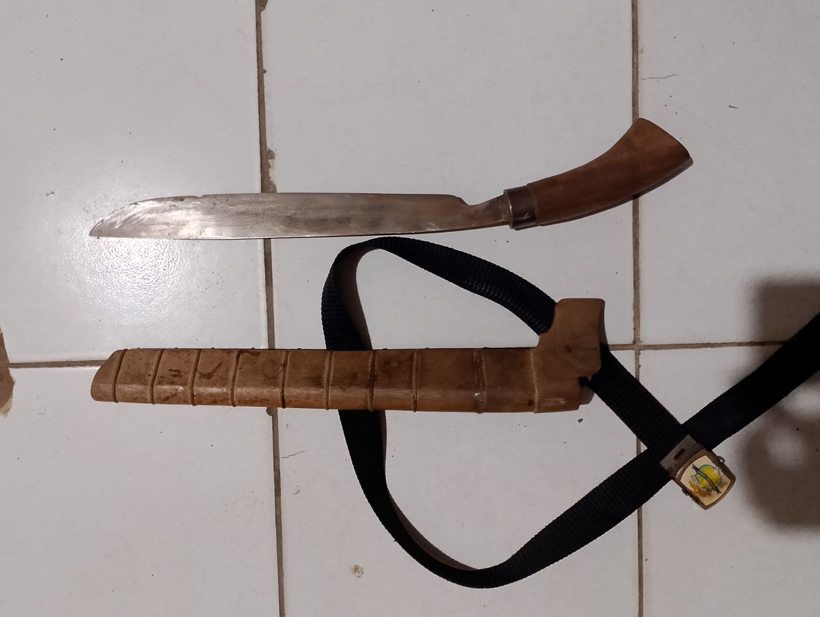 Selanjutnya terlapor berikut barang bukti berupa sebilah sajam jenis golok bergagang kayu warna coklat panjang 40 cm, sarung kayu berwarna coklat, dan sehelai baju kaos warna hitam diamankan di Polsek Banjit untuk dilakukan pemeriksaan lebih lanjut,” terang Kapolsek.