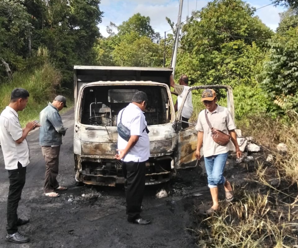 Di tengah jalan sekitar wilayah kayu mulu mobil mengalami musibah kebakaran api diduga berasal dari mesin mobil, begitu melihat ada percikan api sopir yang berinisial AW ( 40 ) langsung keluar sehingga terhindar dari kobaran api.