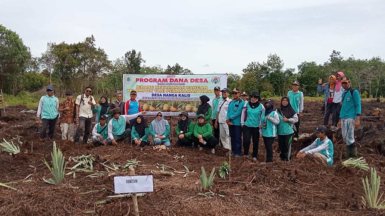 Kepala Desa M. Tahir Mahmud bersama Sekcam Kalis, Drs. Junaidi, resmi menyerahkan bantuan permainan untuk Pendidikan Anak Usia Dini (PAUD) serta melakukan penanaman perdana komoditas ketahanan pangan berupa nanas di Lahan Ketahanan Pangan 2, Trans Sampak UPT XVIII Kalis.