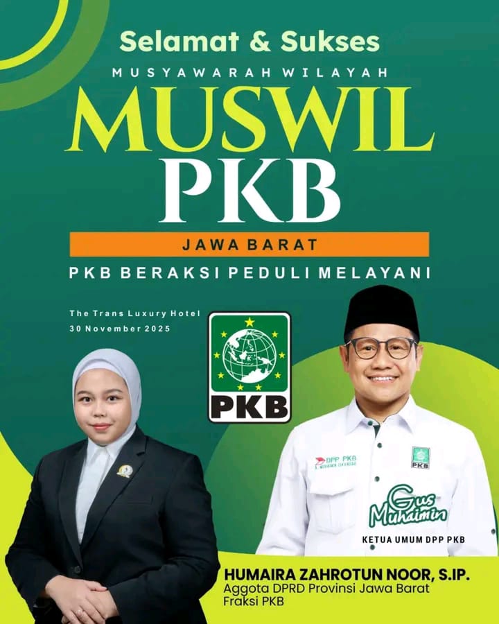 Musyawarah Wilayah (Muswil) Partai Kebangkitan Bangsa (PKB) Jawa Barat resmi digelar pada Minggu, 30/11/2025 November , bertempat di The Trans Luxury Hotel Bandung. Kegiatan ini mengusung tema “PKB Beraksi, Peduli, Melayani” sebagai komitmen partai dalam memperkuat peran dan pelayanan kepada masyarakat Jawa Barat.