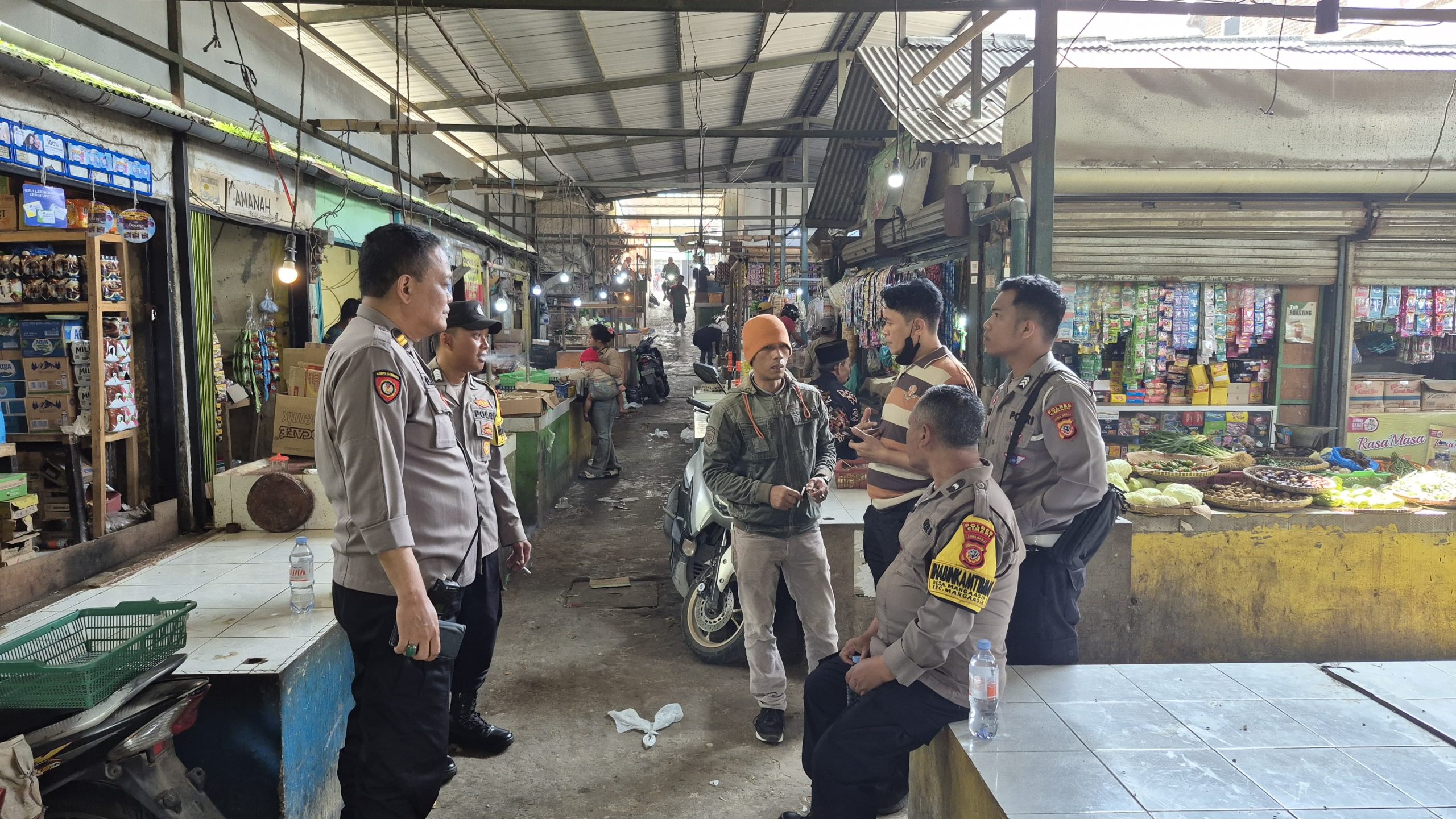 Panit Sabhara Polsek Margaasih Polres Cimahi Iptu Dadi Hardadi ,SH.,MH. Lakukan Pengendalian dan Pengawasan bahan Pangan Sembako tahun 2025, di Pasar Dimensi diwilayah Kecamatan Margaasih Kabupaten Bandung.