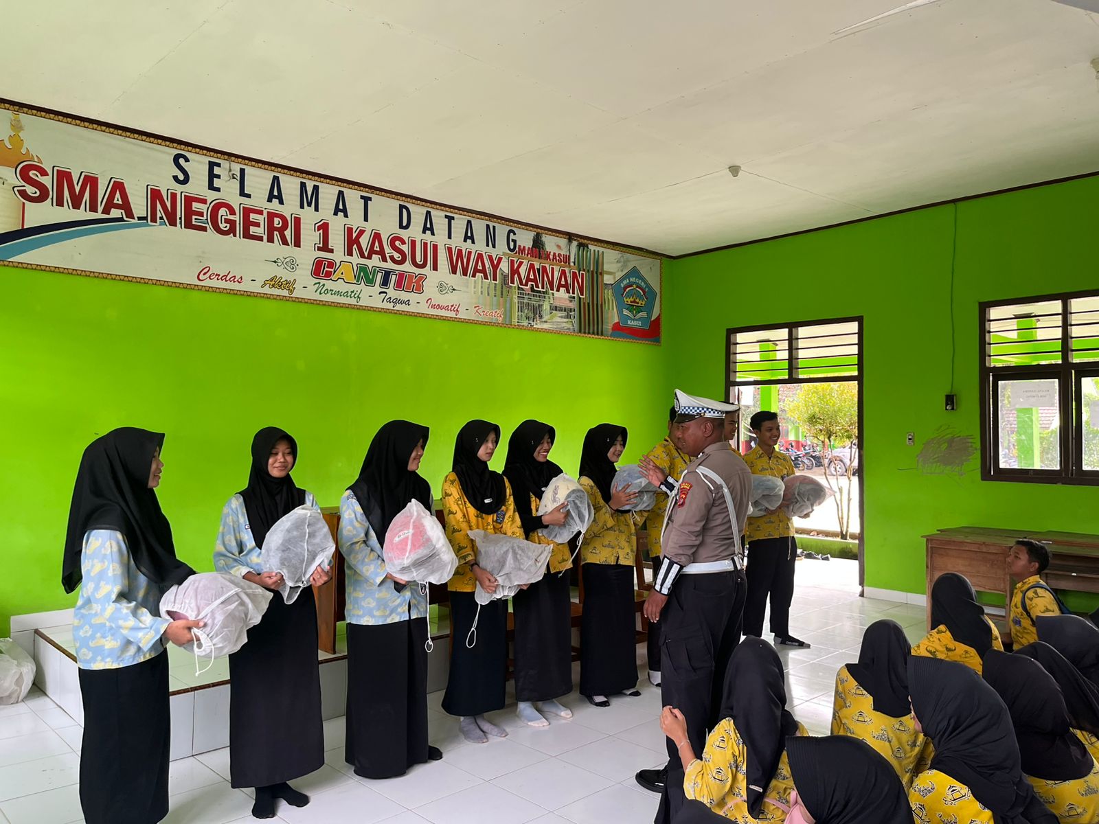 Satuan Lalu Lintas (Satlantas) Polres Way Kanan mengadakan kegiatan Police Goes to School di SMAN 1 Kasui, Kecamatan Kasui Kabupaten Way Kanan untuk meningkatkan dan menanamkan kesadaran disiplin berlalu lintas sejak dini. Senin (8/12/2025).