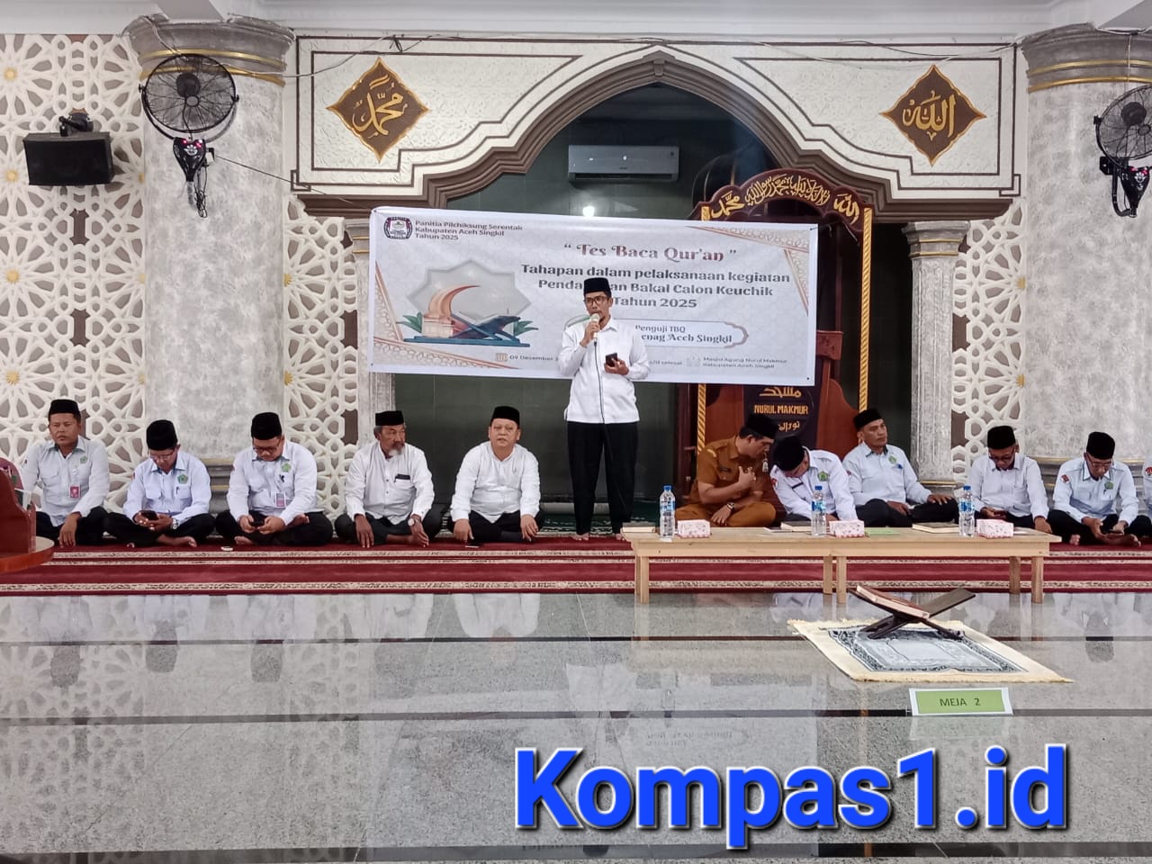 Pelaksanaan tes baca Al-Qur’an sebagai salah satu tahapan dalam kegiatan pendaftaran bakal calon Keuchik tahun 2025 di Kabupaten Aceh Singkil berlangsung lancar dan sesuai harapan.