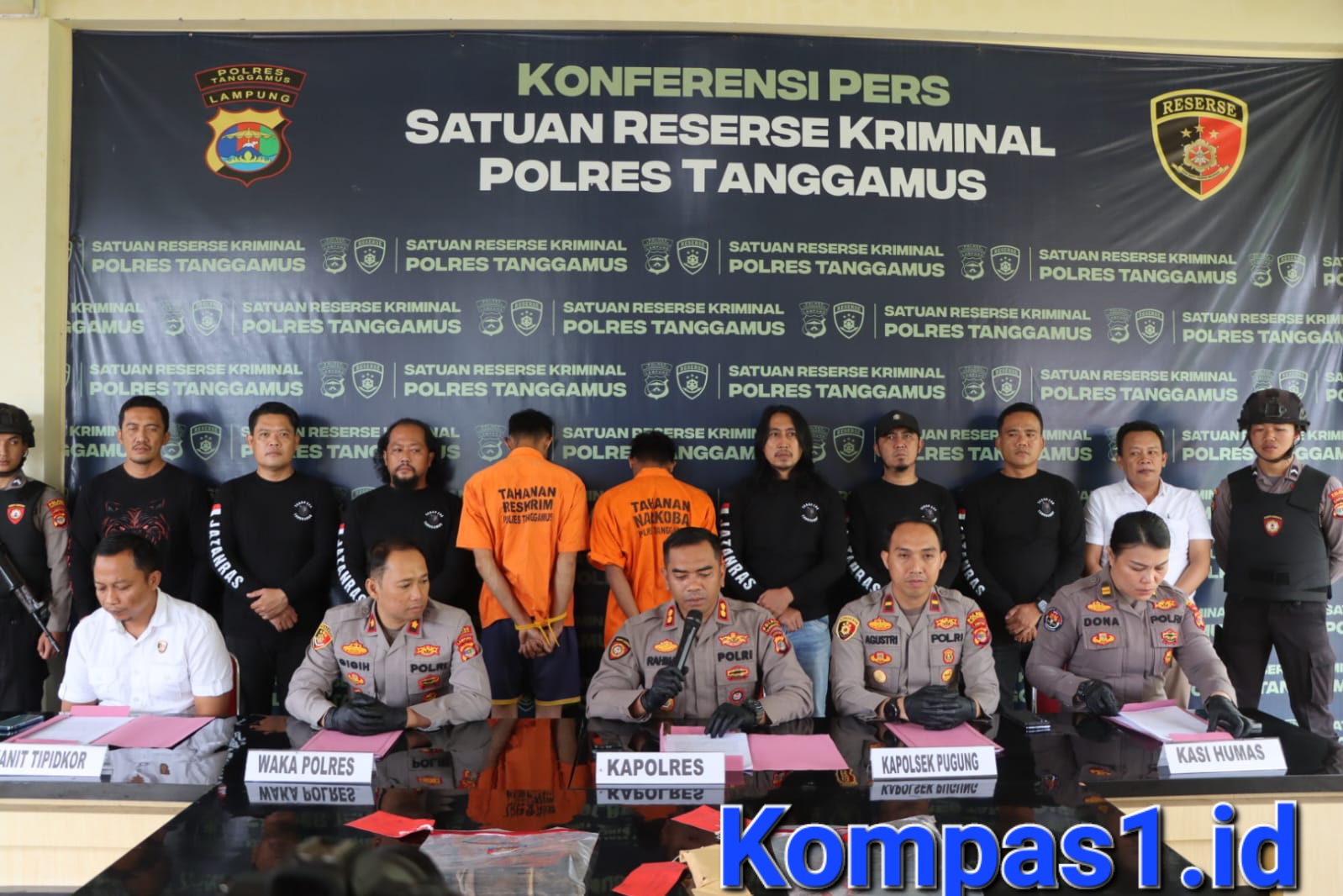 Penetapan tersangka disampaikan Kapolres Tanggamus AKBP Rahmad Sujatmiko, S.I.K., M.H., dalam konferensi pengungkapan kasus di basemant Sat Reskrim Polres Tanggamus.