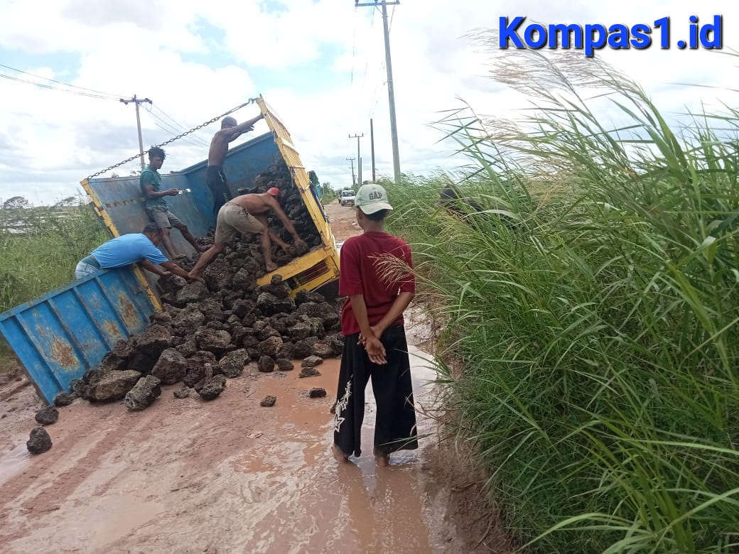 Akibat dari kondisi jalan yang tidak memadai ini menyebabkan terjadinya sebuah mobil truk pengangkut batu timbunan terperosok di dalam lubang mengakibatkan antrian sehingga mobil mengurangi muatan agar bisa di tarik mobil lain.