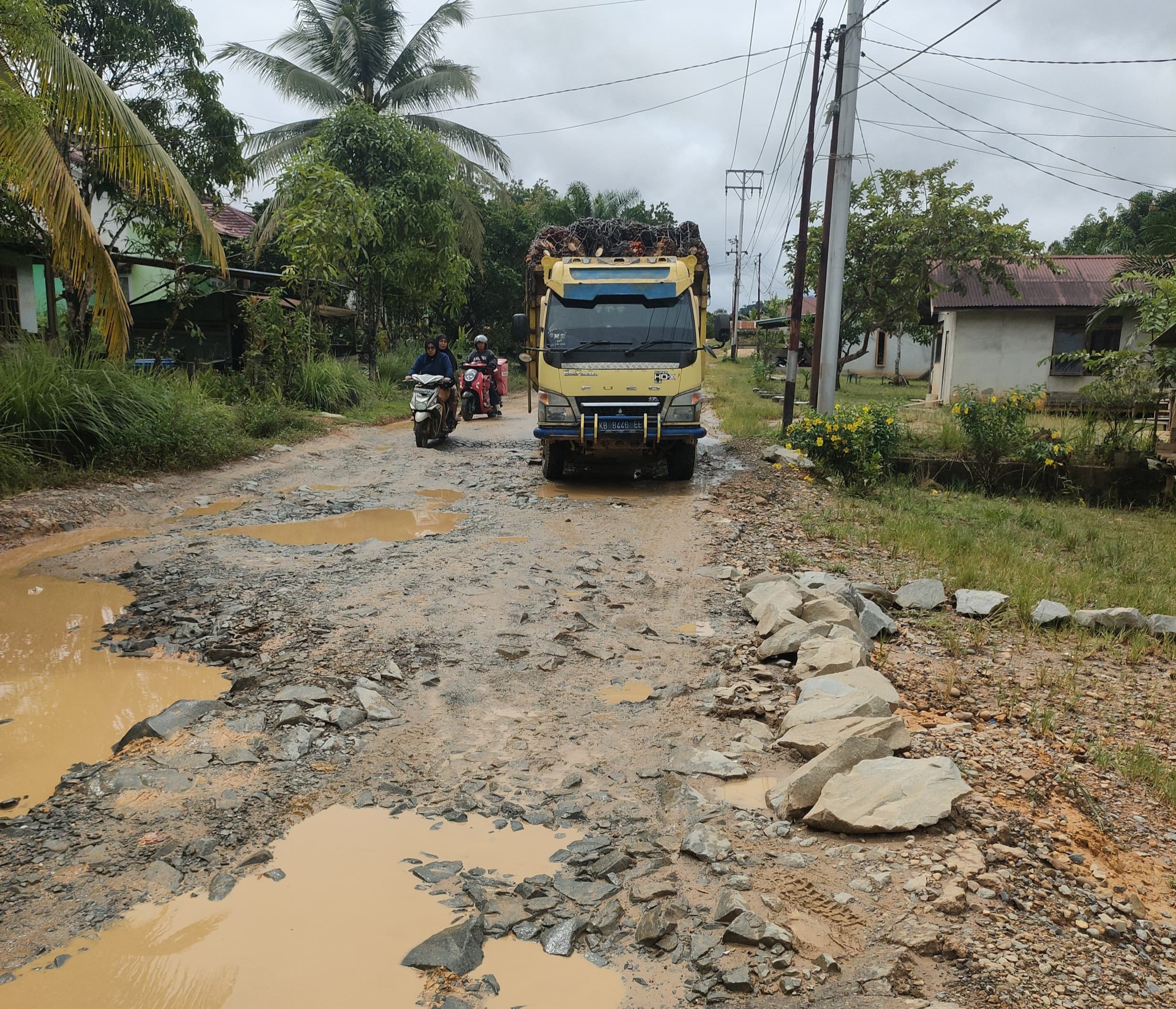 “Selain itu, kondisi jalan yang rusak parah juga berdampak serius terhadap distribusi bahan pokok dan akses layanan darurat. Ambulans, kendaraan kesehatan, hingga kendaraan pendidikan seperti guru dan pelajar kerap mengalami kesulitan melintas, terutama saat hujan turun dengan intensitas tinggi.