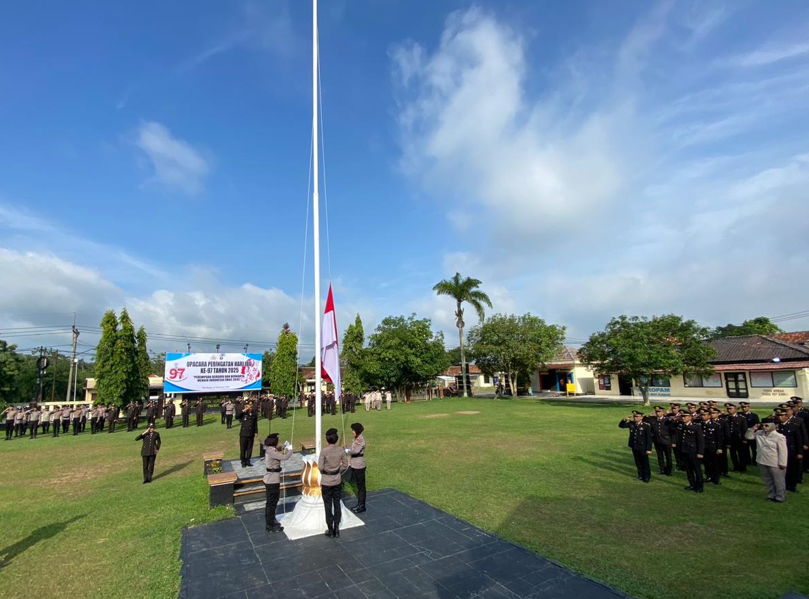 Sementara itu, sejarah singkat Hari Ibu dibacakan dengan penuh penghayatan oleh Brigpol Rantika, mengajak seluruh peserta upacara menelusuri jejak panjang perjuangan perempuan Indonesia.