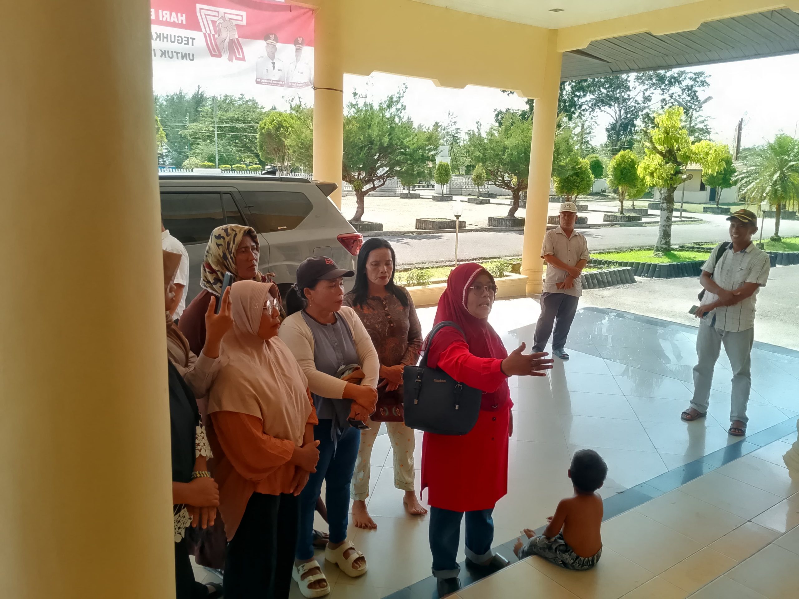 Kisruh pembagian bantuan beras reguler, puluhan emak-emak warga Biskang, kecamatan Danau Paris geruduk kantor bupati Aceh Singkil, Rabu, 24 Desember 2025.