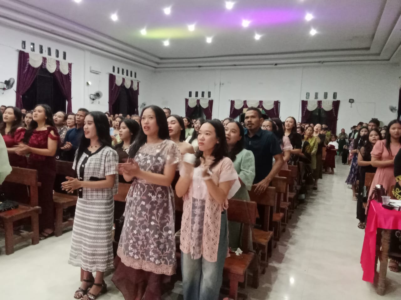 Sejak pagi hari, jemaat tampak antusias memadati gereja untuk mengikuti ibadah Natal. Suasana gereja dihiasi dengan pernak-pernik Natal yang sederhana namun penuh makna, menciptakan nuansa hangat dan sakral. Senyum dan salam kasih antarjemaat menambah rasa kebersamaan dalam perayaan kelahiran Yesus Kristus.