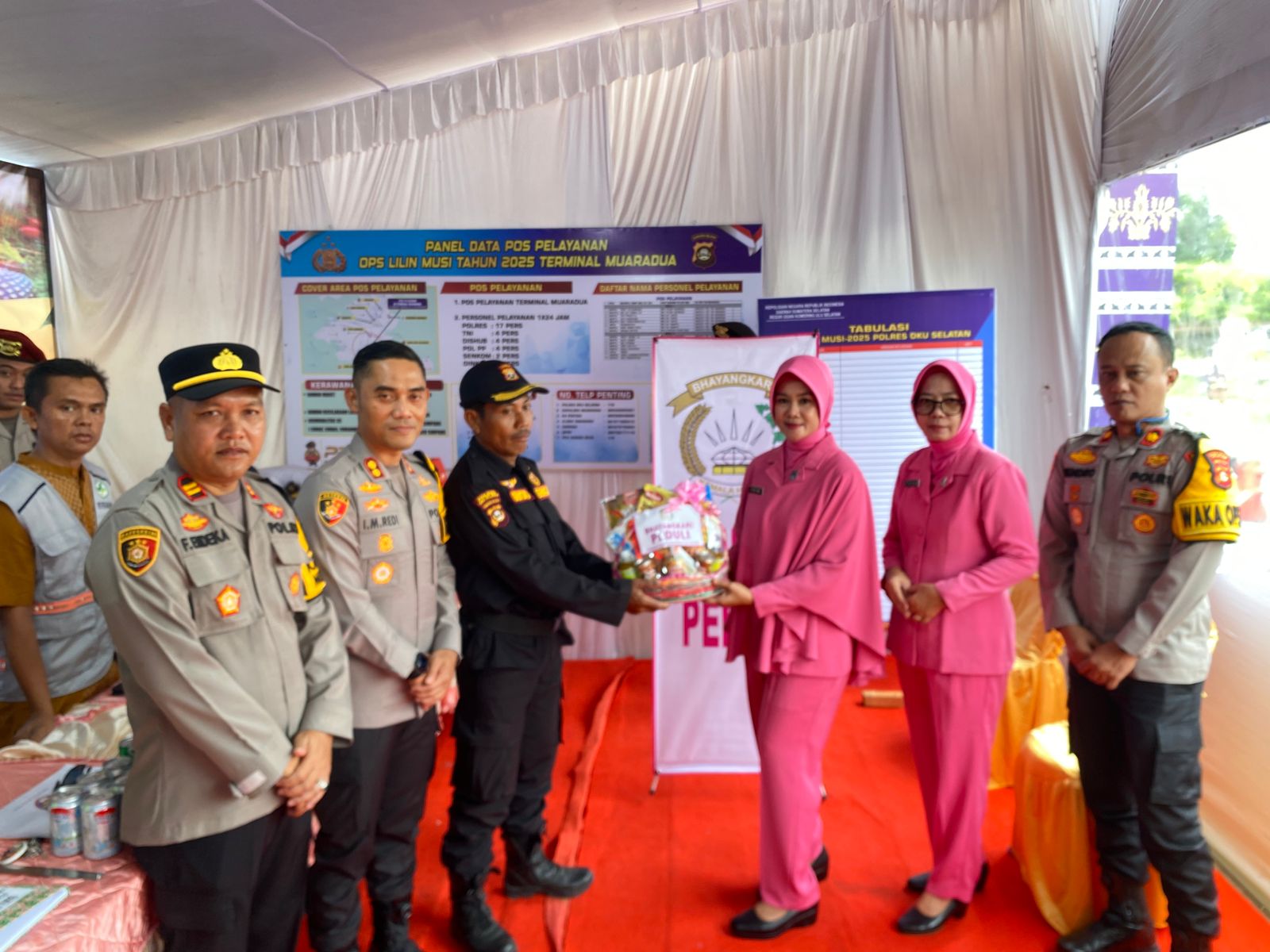 Kapolres OKU Selatan AKBP I Made Redi Hartana, S.H., S.I.K., M.I.K., mendampingi kegiatan Bhayangkari Peduli yang dilaksanakan oleh Pengurus Cabang Bhayangkari OKU Selatan dengan mengunjungi sejumlah Pos Pengamanan (Pospam), Jum’at, 26 Desember 2025.