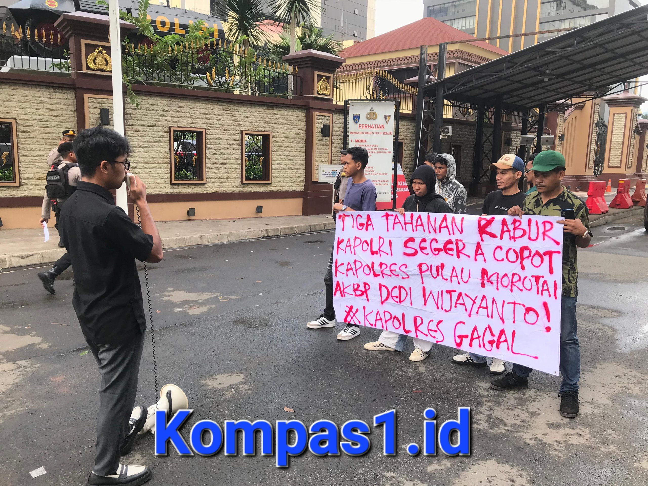 Maluku Utara -Hari ini, sekelompok Mahasiswa yang terintegrasi dalam Forum Mahasiswa Pengamat Hukum (Formatum) menggelar aksi demonstrasi di depan Markas Besar Kepolisian Republik Indonesia (Mabes Polri), pada selasa (30/12). Mereka menuntut pemeriksaan segera terhadap Kapolres Pulau Morotai dan pencopotannya dari jabatan, menyusul kasus kaburnya tiga tahanan dari Polres Pulau Morotai pada Selasa, 23 Desember 2025.