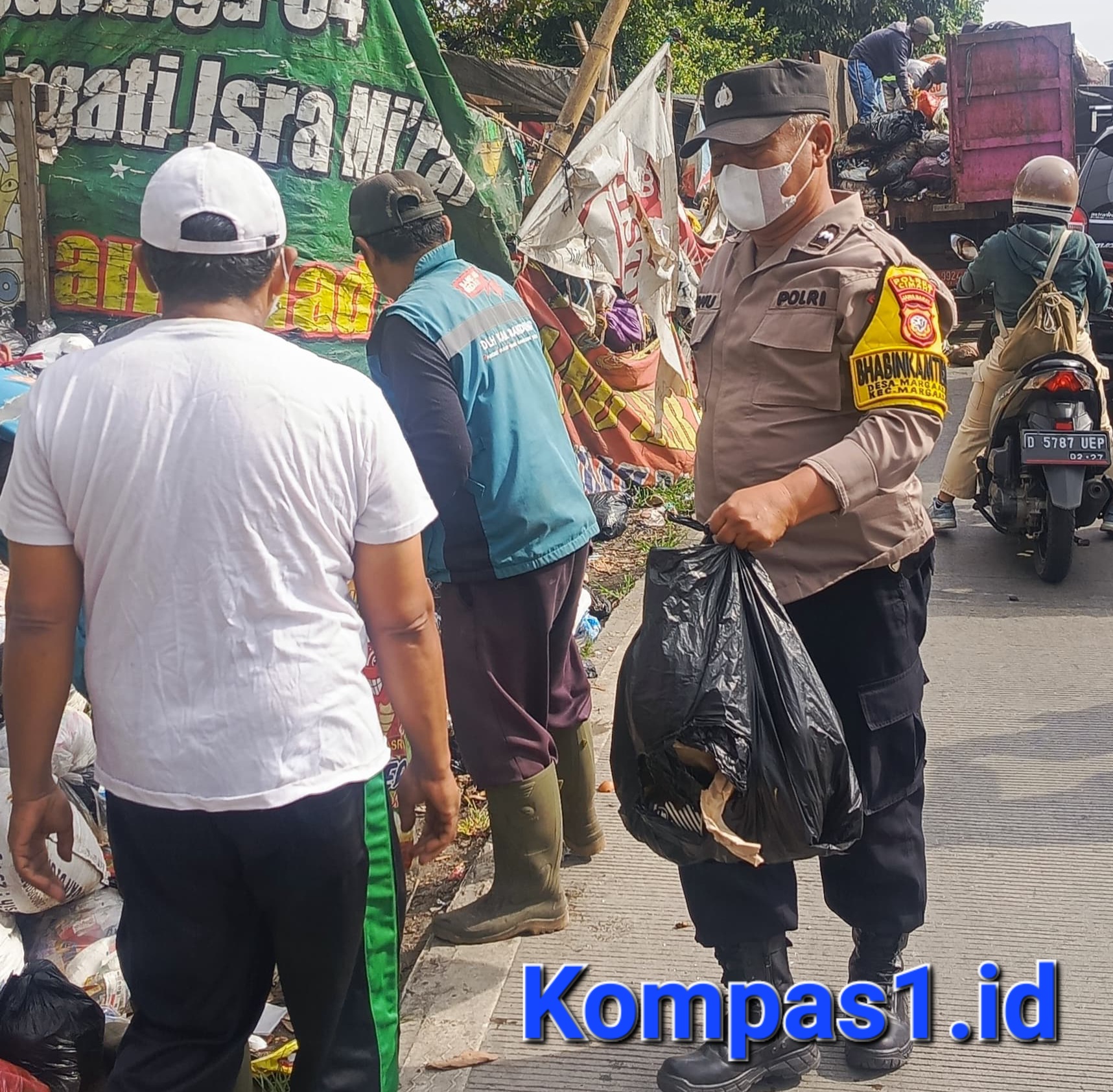 Memperingati hari lingkungan hidup Nasional Bhabinkamtibmas Margaasih Polres Cimahi laksanakan Pembersihan Sampah di Jalan Raya Nanjung Rw 04 Kp.Jati Sari Desa Margaasih Kecamatan Margaasih Kabupaten Bandung.