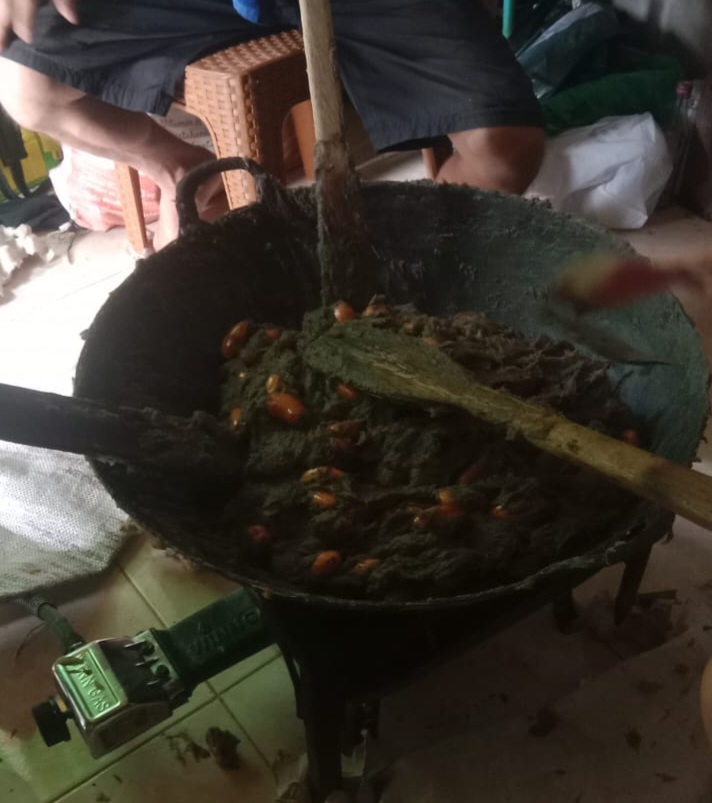 Karena membutuhkan tenaga ekstra, kegiatan mengaduk lempok dilakukan secara bergantian. Satu orang mengaduk, sementara yang lain beristirahat, lalu bergantian kembali. Meski melelahkan, suasana tetap terasa hangat dan penuh canda.